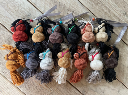 Een leuke, handgemaakte, paardensleutelhanger. Indien gewenst, kan er ook eentje gemaakt worden van jouw lieverd(s).