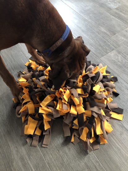 - Laat je hond zeker nooit alleen met de snuffelmat. Houdt altijd in de gaten of je hond geen fleece stukjes aftrekt en opeet.